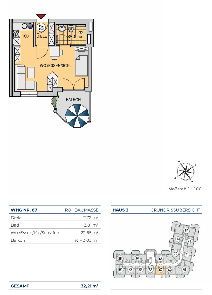 Der „Wohnpark Hubertushof“ fügt sich harmonisch in das Umfeld der Natur ein. Die zum Teil sehr großzügigen Balkone und Terrassen unterstreichen den Freizeitwert der Wohnanlage. Drei Gebäudekörper mit insgesamt 99 Wohnungen. Treffen Sie Ihre Auswahl: Für Sie errichten wir kompakte 1-Zimmer-Wohnungen ab ca. 31 m² bis hin zur großzügigen 4-Zimmer-Wohnung mit ca. 120 m².