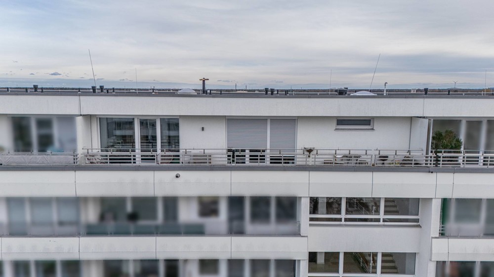 Das Penthouse wurde 2018 auf Bestand aufgebaut und bietet mit einer großzügigen nach Westen orientierten Dachterrasse in der 9. und gleichzeitig obersten Etage des Gebäudes einen überragenden Blick.