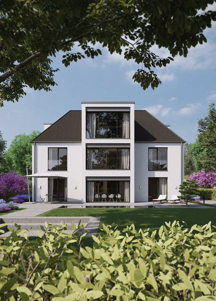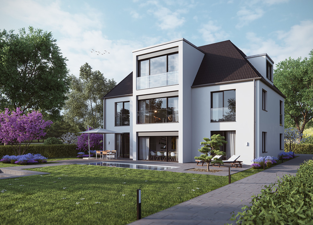 Im Stadtteil Ramersdorf-Perlach im Südosten von München wird eine Villa mit Keller/EG/OG/DG auf einem 1.083 m² großen Grundstück erbaut werden. Die Villa, die sich direkt am Waldesrand befindet, wird mit einer Wohnfläche von ca. 423 m² als besondere Wohlfühloase mit einem Wellness Bereich und Partyraum im Keller, sowie einem Outdoor-Pool errichtet werden.