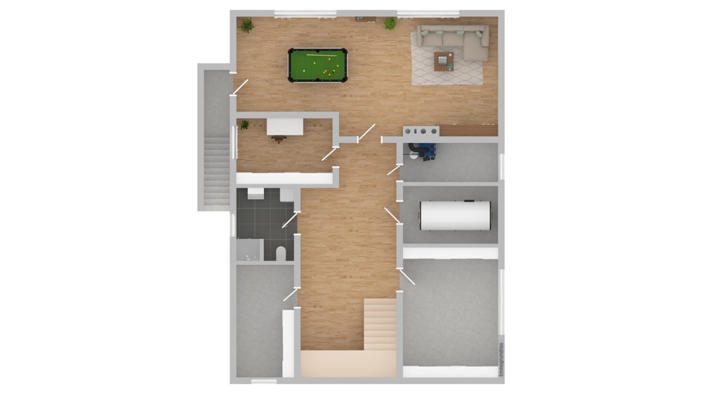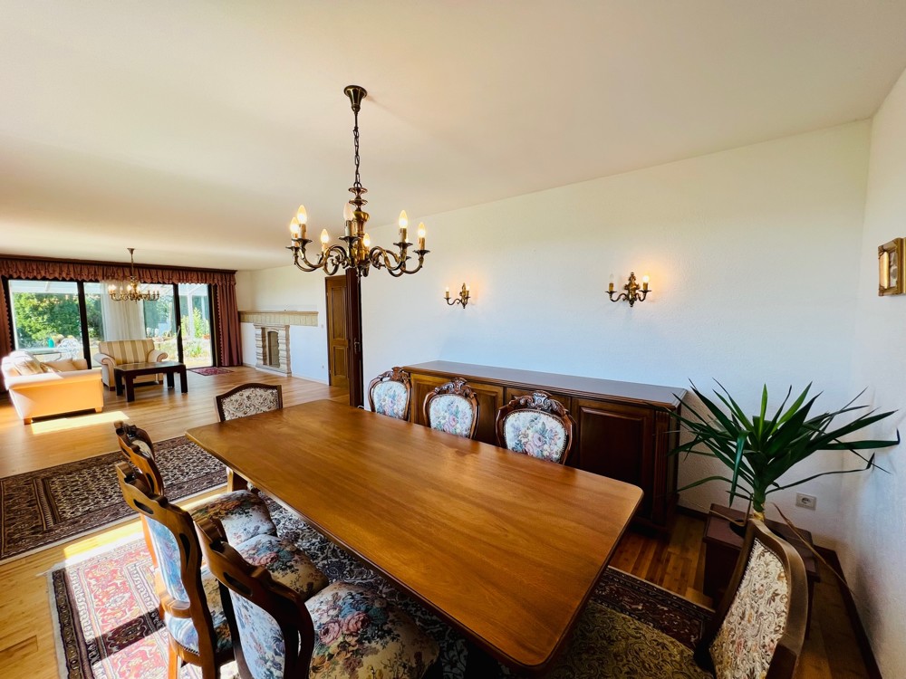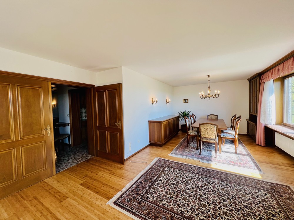 Das gut geschnittene Einfamilienhaus (EG+UG+DG) hat 5 Schlafzimmer einen großen Wohn- / Essbereich, 2 Badezimmer, Wintergarten und eine Werkstatt.