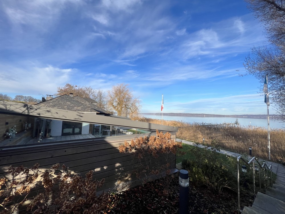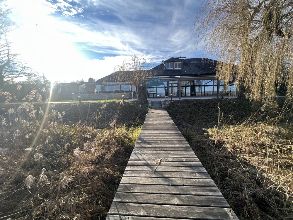 Das Restaurant liegt malerisch am Ufer eines ruhigen Sees und bietet eine einzigartige Kombination aus kulinarischem Genuss und atemberaubender Naturkulisse. Die großzügige Terrasse mit direktem Blick auf das Wasser lädt zum Verweilen ein, während die Innenräume eine stilvolle und gemütliche Atmosphäre schaffen. Große Fensterfronten ermöglichen den Gästen, die Schönheit des Sees zu jeder Jahreszeit zu genießen.